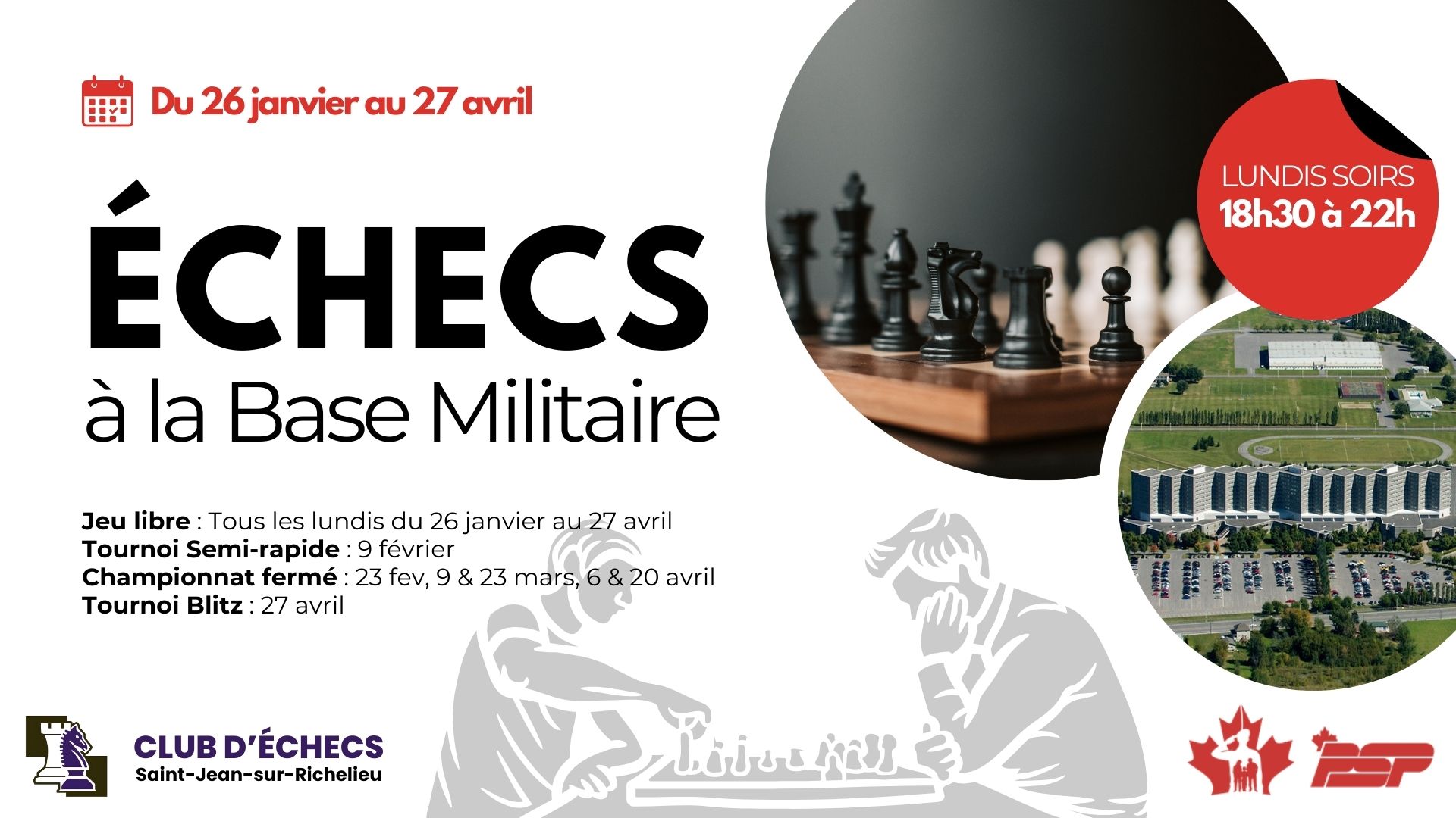Devenez membre du Club d'échecs de Saint-Jean-sur-Richelieu pour supporter son développement et celui des échecs en général !